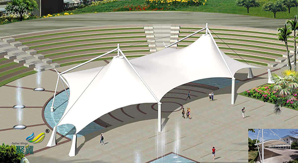 通常膜結(jié)構(gòu)建筑位于市區(qū)內(nèi),有的建造在繁華的鬧市區(qū),特別是用于音樂、娛樂等大型文化活動場所,人們即不希望外部噪音傳入室內(nèi),干擾室內(nèi)活動,也不希望室內(nèi)聲音擴(kuò)散出去,為此對建筑的隔音提出較高的要求。單層膜隔音僅有10dB左右,因此,單層膜結(jié)構(gòu)建筑往往用于對隔音要求不是太高的活動場所,或者通常用巧妙的設(shè)計(jì)、構(gòu)造等手段來提高其隔音性能。目前有人提出增加膜材料的質(zhì)量可提高其隔音性能,但真正能達(dá)到令人滿意的性能指標(biāo),尚需待以時(shí)日。
