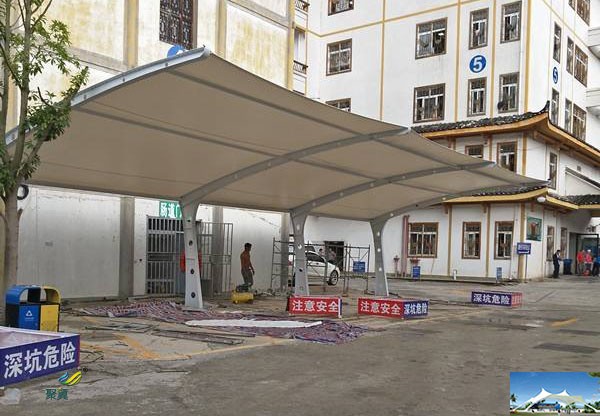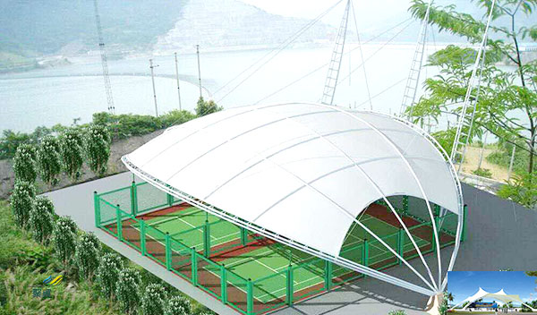 膜結(jié)構(gòu)建筑張拉膜膜結(jié)構(gòu)中所用的膜材、拉索、鋼結(jié)構(gòu)都是在工廠加工制作的,可與基礎(chǔ)部分同時進行,然后將加工好的構(gòu)件運送到現(xiàn)場進行安裝定位,然后張拉膜材即可,對于施工現(xiàn)場的要求較低,這也大大縮減了施工周期。