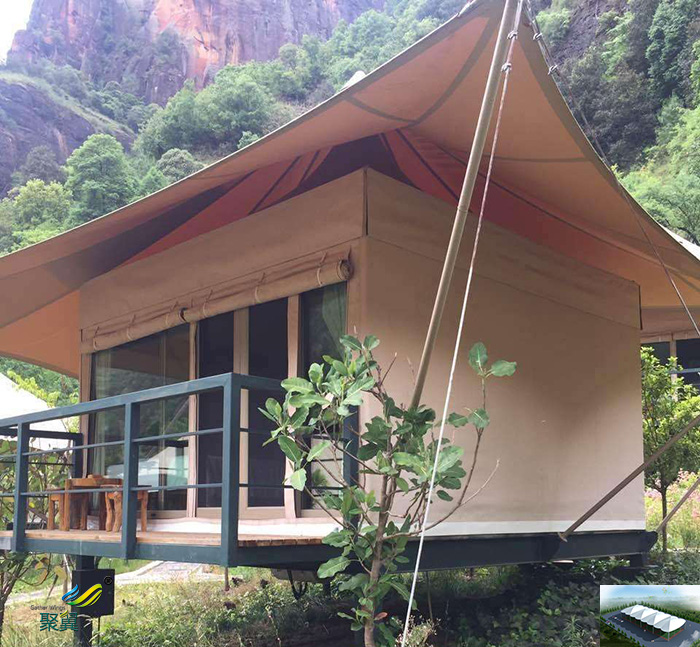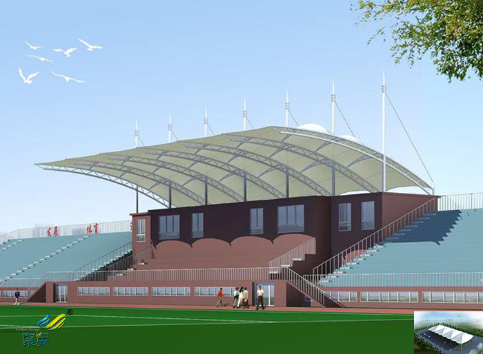 膜結(jié)構(gòu)建筑中的所使用的是一種耐久用、高強(qiáng)度的涂層織物—膜材,由織物和涂層復(fù)合而成,具有質(zhì)地柔韌、重量輕、厚度小、透光性好的優(yōu)點(diǎn)。對(duì)自然光吸收和透射能力、阻燃,具有良好的防火、耐久、氣密等特性;表面經(jīng)過氟素處理或二氧化鈦處理的膜材料抗老化性能好,具有較高的自清潔性能。