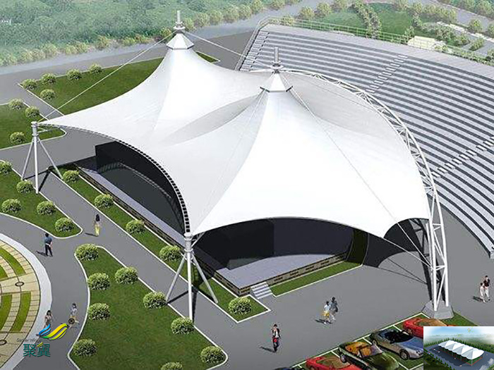 膜結(jié)構(gòu)建筑所采用的膜材具有優(yōu)越的阻燃性和耐高溫性,故能很好的滿足防火要求。由于結(jié)構(gòu)自重輕,又為柔性結(jié)構(gòu)且有較大變形能力,故抗震性能好。