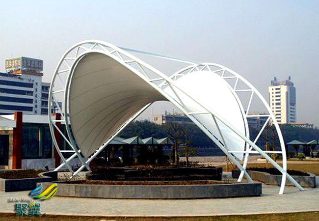 膜結(jié)構(gòu)景觀建筑的優(yōu)點(diǎn)就在于其造型自由輕巧、阻燃、制作簡易、安裝快捷、節(jié)能、易于施工、耐用、透光性能好、耐溫、輕便等。膜結(jié)構(gòu)景觀建筑的優(yōu)點(diǎn)選用了進(jìn)口結(jié)構(gòu)建筑材料,高強(qiáng)度的膜結(jié)構(gòu)景觀建筑膜材加上張拉技術(shù),停車棚具有較強(qiáng)的抵御風(fēng)雨的能力,即使遇到暴風(fēng)雨,膜結(jié)構(gòu)景觀建筑也會(huì)毫發(fā)無傷,透光性能好,即使被暴曬也不會(huì)產(chǎn)生變黃的情況。