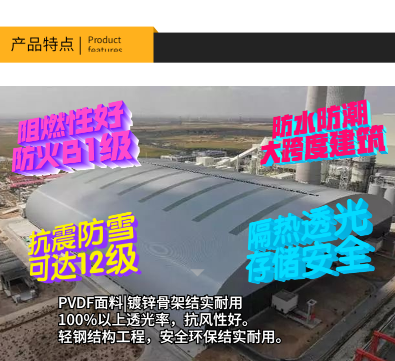 • 大跨度煤棚設(shè)計(jì)施工軟膜煤棚材料防火B(yǎng)1級(jí)