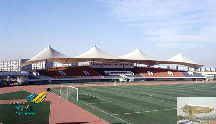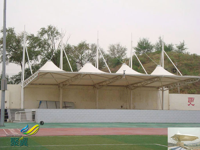 2、膜結構體育看臺建造施工工期短,膜結構加工制造都是在工廠內完成的,縮短了施工時間,從而也為企業(yè)節(jié)省了施工成內本。