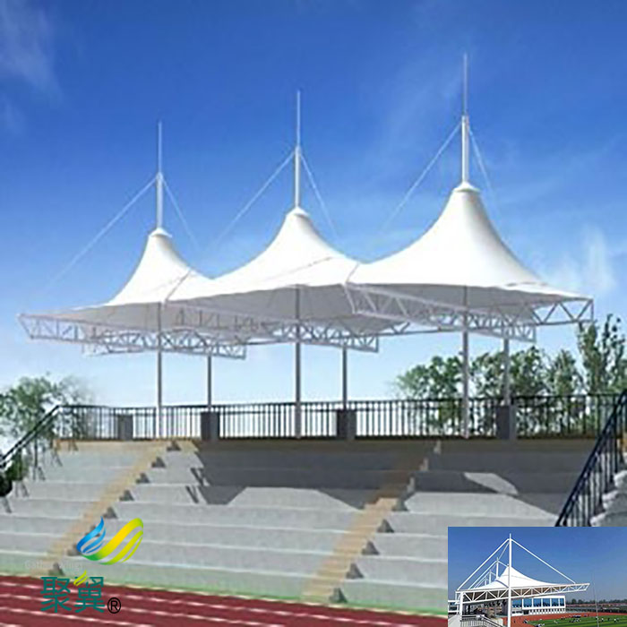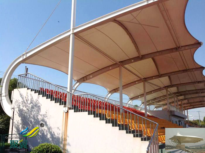 2.膜結(jié)構(gòu)體育看臺(tái)建造施工工期短,膜結(jié)構(gòu)加工制造都是在工廠內(nèi)完成的,縮短了施答工時(shí)間,從而也為企業(yè)節(jié)省了施工成本。