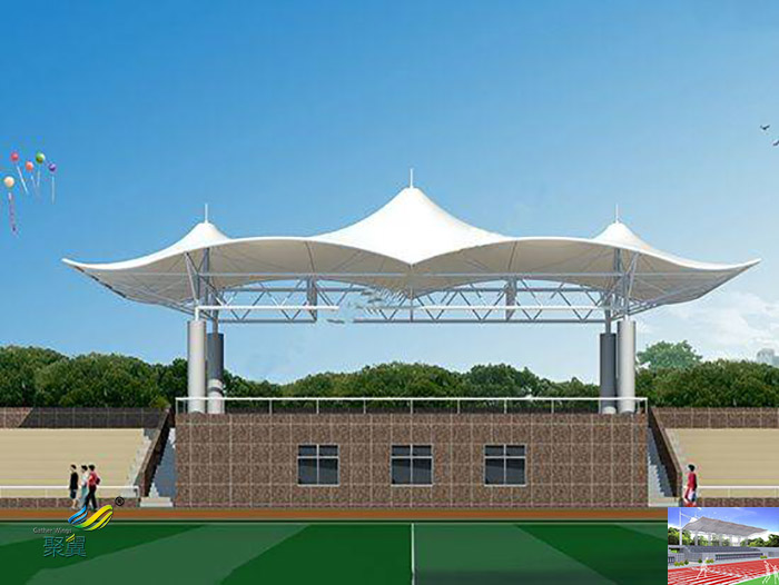 隨著膜結(jié)構(gòu)的運(yùn)用越來(lái)越廣泛,在膜結(jié)構(gòu)建筑中又出現(xiàn)了一種膜結(jié)構(gòu)體育看臺(tái),我們平時(shí)見(jiàn)到的那種設(shè)計(jì)漂亮、美觀大氣的學(xué)校體育場(chǎng)看臺(tái)一般就是膜結(jié)構(gòu)做的。膜結(jié)構(gòu)體育看臺(tái)占地面積小,設(shè)計(jì)獨(dú)特,造型優(yōu)美,透光性好,雕塑感強(qiáng),受到了越來(lái)越多人的青睞。