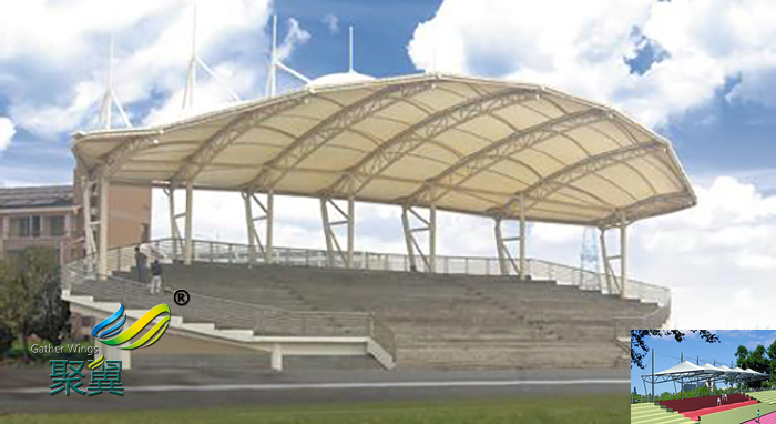 2、膜結(jié)構(gòu)體育看臺(tái)建造施工工期短,膜結(jié)構(gòu)加工制造都是在工廠內(nèi)完成的,縮短了施工時(shí)間,從而也為企業(yè)節(jié)省了施工成本。