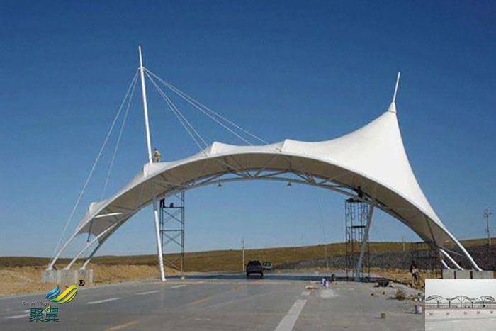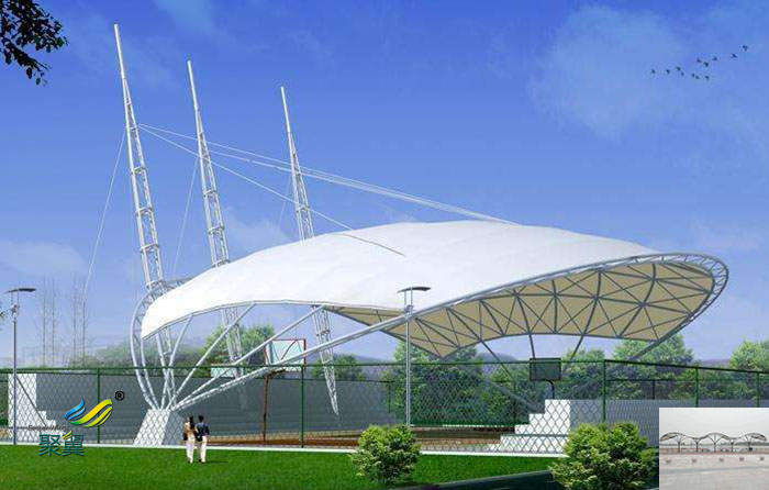 為了解決鋼構(gòu)配合鋁塑板的弊病,膜結(jié)構(gòu)慢慢進(jìn)入了看臺(tái)市場(chǎng),相比傳統(tǒng)的建筑形式膜結(jié)構(gòu)體育看臺(tái)的優(yōu)點(diǎn)很多:首先它不僅滿足了造型的多樣性、夸張性,而且也完美的解決了對(duì)于大跨度結(jié)構(gòu)用鋼量大的問題,往往對(duì)于大跨度的結(jié)構(gòu)來(lái)說,起跨度尺寸就代表著需要大量的鋼結(jié)構(gòu)來(lái)補(bǔ)足,然而對(duì)于膜結(jié)構(gòu)來(lái)說,其特有的延展性和超高的的抗拉強(qiáng)度完美的解決了大跨度帶來(lái)的困擾,大大的節(jié)約了施工成本。其各種顏色的配比也使得其與周邊環(huán)境多了更多的搭配方式,膜結(jié)構(gòu)常用膜材特有的自潔效果防水效果,降低了后期對(duì)于主體結(jié)構(gòu)的維護(hù)費(fèi)用。膜材質(zhì)保年限最低10年,高的能達(dá)到25-30年的材料質(zhì)保,這也使得設(shè)計(jì)成永久性建筑的設(shè)計(jì)初衷得到了完美的結(jié)合。而且其相對(duì)于鋼筋混凝土和純鋼結(jié)構(gòu)來(lái)說還有一明顯優(yōu)點(diǎn)---施工周期短(自重輕、結(jié)構(gòu)簡(jiǎn)單)。另外膜結(jié)構(gòu)還有一優(yōu)于其它結(jié)構(gòu)的顯著特點(diǎn)—半透明性,白天能將陽(yáng)光漫反射到結(jié)構(gòu)以下,能完美的起到遮陽(yáng)效果,還不影響其下方正常使用;在夜晚可以逆光照射,使得膜材表面發(fā)光,造就一個(gè)不一樣的視覺盛宴