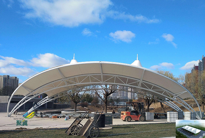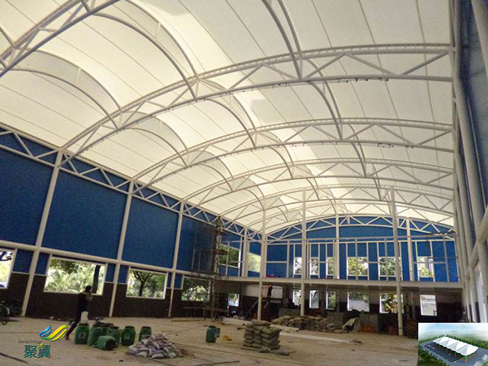 2、膜結(jié)構(gòu)體育看臺建造施工工期短,膜結(jié)構(gòu)加工制造都是在工廠內(nèi)完成的,縮短了施答工時間,從而也為企業(yè)節(jié)省了施工成本。