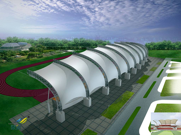 1、自由獨(dú)特的造型,膜結(jié)構(gòu)體育看臺造型多變,能夠適應(yīng)不同風(fēng)格建筑,更加新穎美觀,而且膜材料的色彩豐富、鮮艷,視覺效果非常好。相對于傳統(tǒng)車棚,它的美觀特性更是得到了充分的展現(xiàn)。