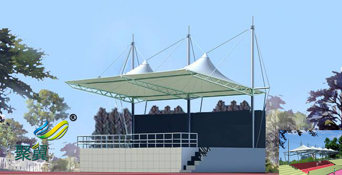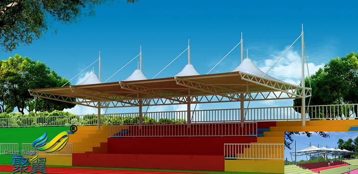膜結(jié)構(gòu)體育看臺(tái)不僅滿足了造型的多樣性、夸張性,而且也完美的解決了對(duì)于大跨度結(jié)構(gòu)用鋼量大的問題,往往對(duì)于大跨度的結(jié)構(gòu)來說,起跨度尺寸就代表著需要大量的鋼結(jié)構(gòu)來補(bǔ)足,然而對(duì)于膜結(jié)構(gòu)來說,其特有的延展性和超高的的抗拉強(qiáng)度完美的解決了大跨度帶來的困擾,大大的節(jié)約了施工成本。其各種顏色的配比也使得其與周邊環(huán)境多了更多的搭配方式,膜結(jié)構(gòu)常用膜材特有的自潔效果防水效果,降低了后期對(duì)于主體結(jié)構(gòu)的維護(hù)費(fèi)用。膜材質(zhì)保年限最低10年,高的能達(dá)到25-30年的材料質(zhì)保,這也使得設(shè)計(jì)成永久性建筑的設(shè)計(jì)初衷得到了完美的結(jié)合。而且其相對(duì)于鋼筋混凝土和純鋼結(jié)構(gòu)來說還有一明顯優(yōu)點(diǎn)---施工周期短(自重輕、結(jié)構(gòu)簡(jiǎn)單)。膜結(jié)構(gòu)體育看臺(tái)另外膜結(jié)構(gòu)還有一優(yōu)于其它結(jié)構(gòu)的顯著特點(diǎn)——半透明性,白天能將陽(yáng)光漫反射到結(jié)構(gòu)以下,能完美的起到遮陽(yáng)效果,還不影響其下方正常使用;在夜晚可以逆光照射,使得膜材表面發(fā)光,造就一個(gè)不一樣的視覺盛宴。