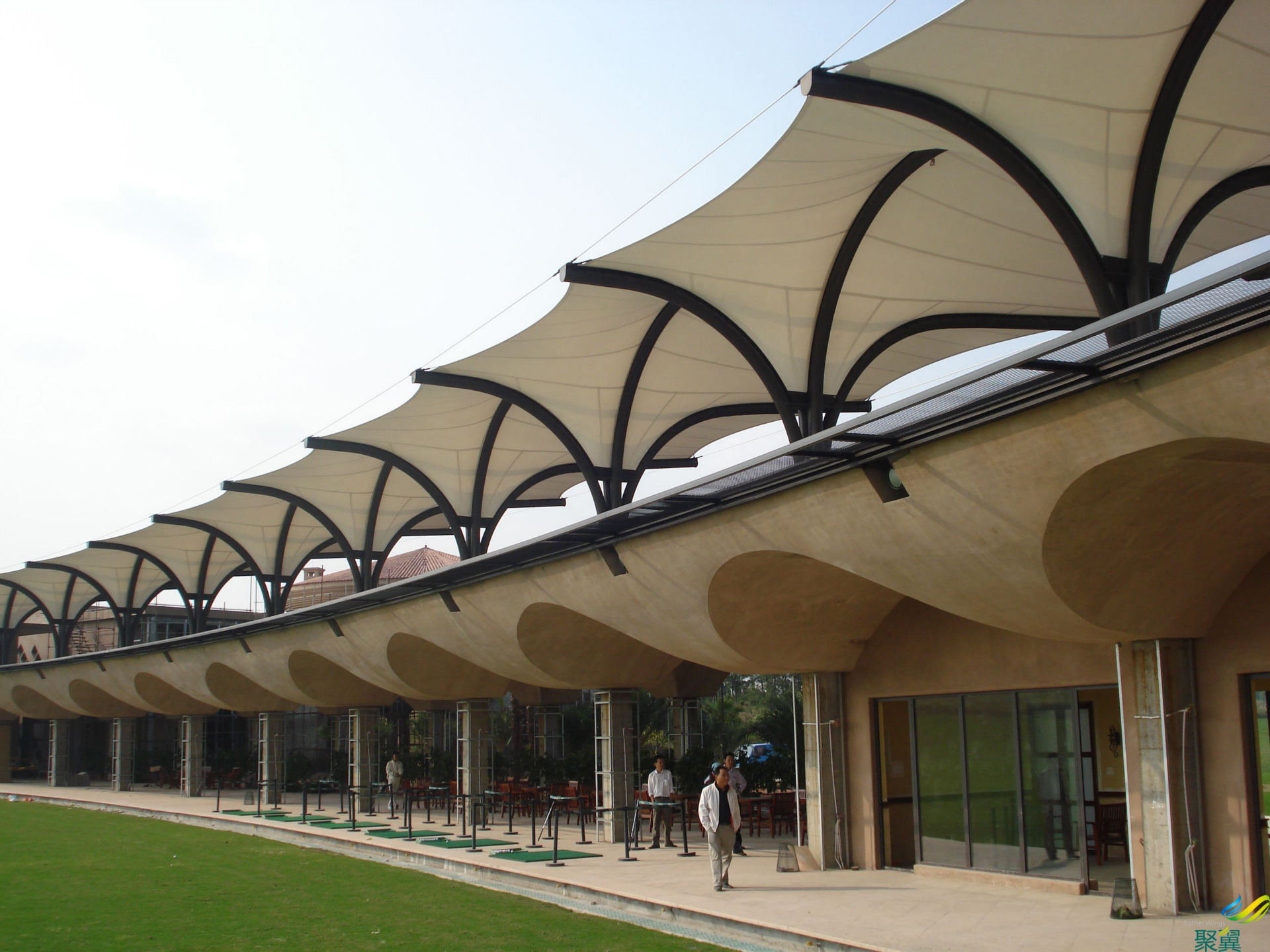 • 上海閔行新加坡外國語學校高爾夫發(fā)球臺遮陽棚 景觀遮陽棚