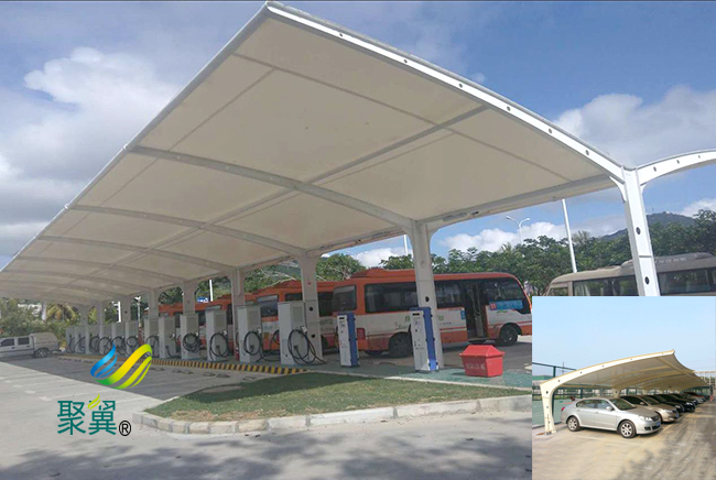 膜結(jié)構(gòu)車棚的規(guī)劃和建設(shè)成為現(xiàn)代城市規(guī)劃的重要組成部分,在以后的建設(shè)里會(huì)變得越來越重要。膜結(jié)構(gòu)車棚輕巧、別致的造型在停車場(chǎng)及候車廳的建設(shè)中擔(dān)當(dāng)了重要角色,除了滿足防風(fēng)雨、防日曬等基本功能外,并有較好的標(biāo)識(shí)招攬效果,展現(xiàn)了人們個(gè)性化的一面。