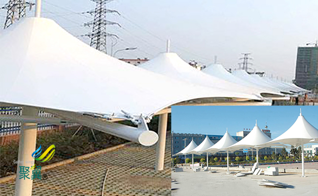 膜結(jié)構(gòu)車棚除了一般雨蓬不行比較的有用、經(jīng)用、遮風(fēng)擋雨的功用外,膜結(jié)構(gòu)車棚雨蓬更是一座雕塑,一件藝術(shù)品,給人美的視覺享受。其柔美,其曲線,膜結(jié)構(gòu)車棚剛?cè)岵?,其豐厚造型,其潔白無瑕,讓人眼前一亮,回味悠長,展示了人們個性化的一面。