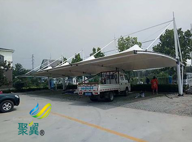 膜結(jié)構(gòu)車棚建筑所采用的膜材具有卓越的阻燃性和耐高溫性,故能很好的滿足防火要求。由于膜結(jié)構(gòu)車棚結(jié)構(gòu)自重輕,又為柔性結(jié)構(gòu)且有較大變形能力,故抗震性能好。工期短:膜結(jié)構(gòu)車棚膜材裁剪。拼合成型及骨架的鋼結(jié)構(gòu)、鋼索均在工廠加工制作,現(xiàn)場只需組裝,膜結(jié)構(gòu)車棚施工簡便,故施工周期比傳統(tǒng)建筑短。