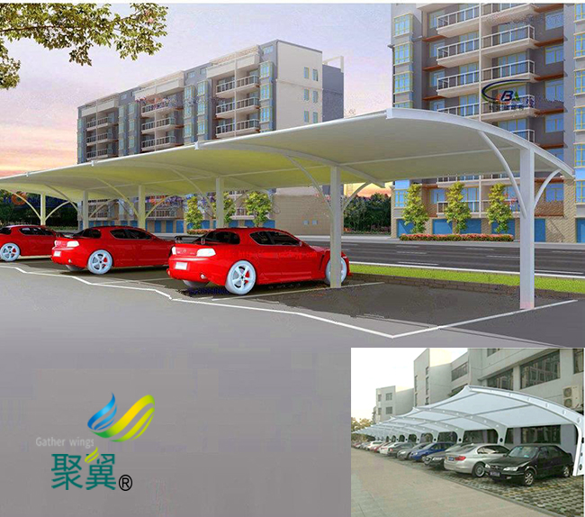 膜結(jié)構(gòu)車棚材料除了具有良好的透光性、優(yōu)異的防水和抗紫外線性能外,還適用于建筑室外的建筑小品、走廊等供人們散步和休息的場所。除了具有良好的保溫效果外,膜結(jié)構(gòu)車棚的動植物園和溫室也很受歡迎。