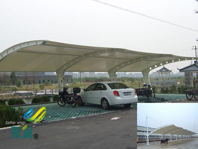 現(xiàn)在很多大型商場的天津市河西區(qū)膜結(jié)構(gòu)車棚都是設(shè)置在外面的,外面的天津市河西區(qū)膜結(jié)構(gòu)車棚會(huì)經(jīng)過太陽曬、雨淋,所以現(xiàn)在很多人都運(yùn)用了天津市河西區(qū)膜結(jié)構(gòu)車棚,天津市河西區(qū)膜結(jié)構(gòu)車棚的篷布材質(zhì)是膜結(jié)構(gòu),而膜材的最大特點(diǎn)是強(qiáng)度高、耐久性好、防火難燃、自潔性好,不受紫外線影響,使用壽命長,一般15-30年。具有高透光率,透光率為13%,對(duì)熱能反射率73%,熱吸收量很少。正是因?yàn)檫@種劃時(shí)代的膜材料的發(fā)明,使天津市河西區(qū)膜結(jié)構(gòu)車棚成為現(xiàn)代化的永久建筑。