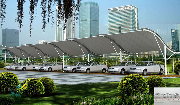 膜結(jié)構(gòu)車棚本身質(zhì)量輕,防凍/防震特性好,無須應(yīng)用內(nèi)部支撐板,減少了民居建筑構(gòu)造在大跨距建設(shè)項(xiàng)目上所碰到的難點(diǎn),能夠轉(zhuǎn)化成極大的無遮擋空間,十分合理提升了空間具體套內(nèi)建筑面積,因此車棚現(xiàn)階段也較為普遍應(yīng)用膜結(jié)構(gòu)來修建。