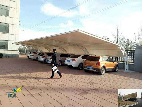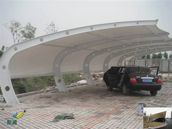 膜結(jié)構(gòu)車棚的篷布材質(zhì)是膜結(jié)構(gòu),而膜材的特點(diǎn)是強(qiáng)度高、耐久性好、防火難燃、自潔性好,不受紫外線影響,使用壽命長,一般15-30年。具有高透光率,透光率為13%,對(duì)熱能反射率73%,熱吸收量很少。正是因?yàn)檫@種劃時(shí)代的膜材料的發(fā)明,使膜結(jié)構(gòu)車棚成為現(xiàn)代化的建筑。鑒與此,膜結(jié)構(gòu)造型的停車棚在停車場建設(shè)中也以其優(yōu)美的造型和實(shí)在的功能擔(dān)當(dāng)重要角色,是您的愛車安身之所。
