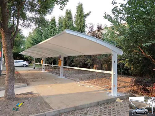 第一、膜結(jié)構(gòu)車棚造價合理,膜結(jié)構(gòu)車棚的頂棚重量輕,對兩側(cè)立柱的壓力小,降低了整體的造價,同時它的美觀性和豐富造型為商業(yè)發(fā)展帶來了更大的活力。