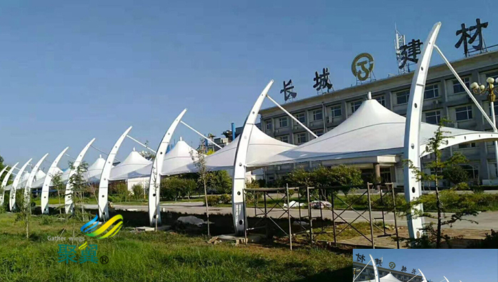 上海膜結(jié)構(gòu)停車棚施工組圖必看。膜結(jié)構(gòu)停車棚從外觀上看去,zui大的一個特點就是美觀。沒錯,膜結(jié)構(gòu)車棚材料一舉顛覆以往的車棚材料,不僅有保護車棚的作用,還迎合了當今時代美化環(huán)境的主題。聚翼膜結(jié)構(gòu)材料的車棚可以做到這一點,zui大的原因就是它的強度高,可以通過各種各樣的技術(shù),將這種材料改變?yōu)楦鞣N各樣的樣子。