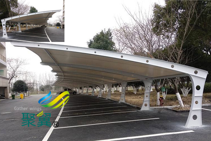 • 膜結(jié)構(gòu)車棚藝術(shù)展示|膜結(jié)構(gòu)停車棚膜布安裝
