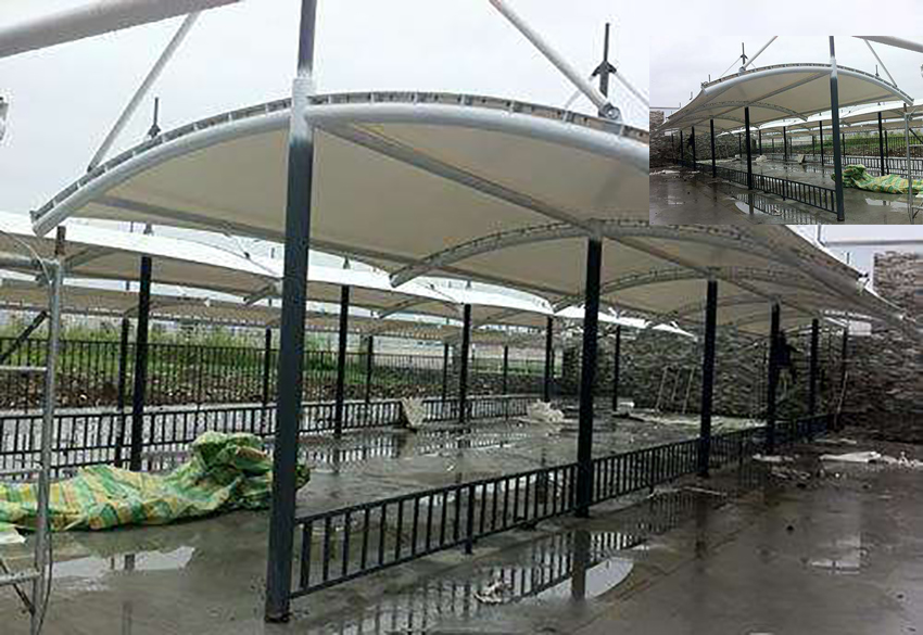 • 上海雙開式膜結(jié)構(gòu)車棚自行車棚安裝案列流程