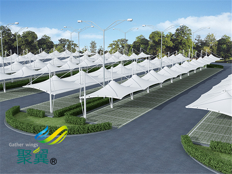 從膜結(jié)構(gòu)的面積、預(yù)應(yīng)力等來挑選技術(shù)參數(shù)適宜的膜結(jié)構(gòu)遮陽雨棚PVC膜材膜材、使膜材即能滿意膜結(jié)構(gòu)建筑需要,又不會形成浪費(fèi)。