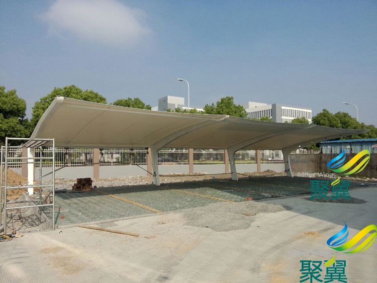 膜結(jié)構(gòu)車棚用材:PVC,PVDF面料,Q235國際鋼骨架。