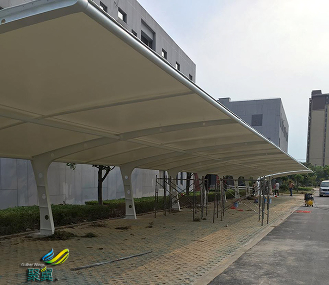 無錫膜結(jié)構(gòu)車棚造型和色彩的多樣性作為一種柔性材料,其在建筑上的造型變化多端,是其它材料所不能比擬的,因此也造就了無錫膜結(jié)構(gòu)車棚多變的特性,充分體現(xiàn)出建筑形體塑造力和輕盈、飄逸的動感曲線外觀。