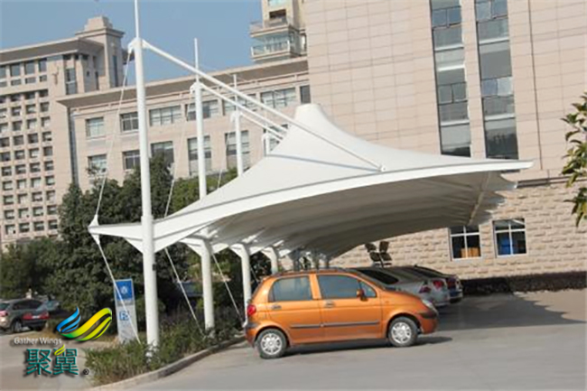 9、膜結(jié)構(gòu)車棚輕便性:重量輕,絕對保證棚下人和物的安全。