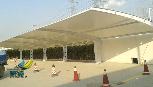 膜結(jié)構(gòu)車棚具有藝術(shù)性,除了一般的雨篷具有不可比擬的使用價值,且比較耐用,具有遮風(fēng)擋雨的效果,不僅如此,還具有給人美觀的享受。膜結(jié)構(gòu)車棚本身柔美曲線的效果,且可以剛?cè)岵?jì),造型豐富,使用的時候十分便利。膜結(jié)構(gòu)車棚的防雨能力更強(qiáng),目前很多車棚使用了永久模式的膜材,使用了三四十年都沒有問題,尤其是遇到了劇烈的暴風(fēng)雨氣候,也不會損壞。