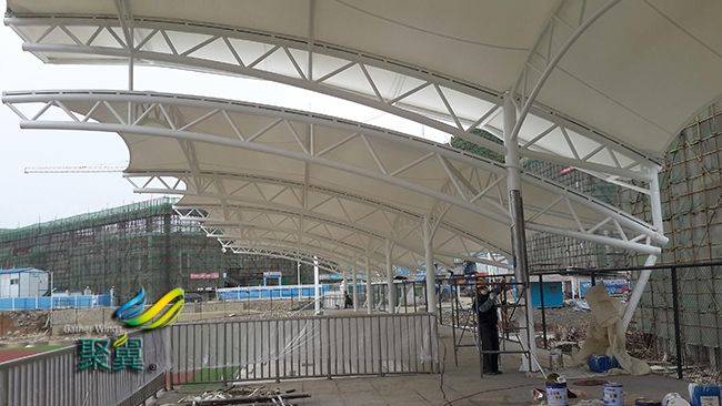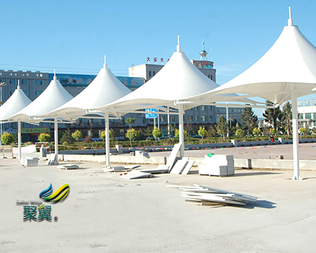 膜結(jié)構(gòu)車(chē)棚是一種具有一定剛度的穩(wěn)定曲面,能承受一定外荷載的空間結(jié)構(gòu)形式。膜結(jié)構(gòu)車(chē)棚造型自由輕巧、阻燃、制作簡(jiǎn)易、安裝快捷、能易于、使用安全等優(yōu)點(diǎn),因而使膜結(jié)構(gòu)車(chē)棚在世界各地受到廣泛應(yīng)用。