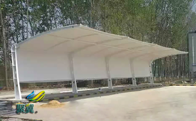 膜結(jié)構(gòu)停車棚安裝過(guò)程中不應(yīng)發(fā)生雨水積存現(xiàn)象。同時(shí)應(yīng)根據(jù)降雨的程度決定工程的中止和繼續(xù)。