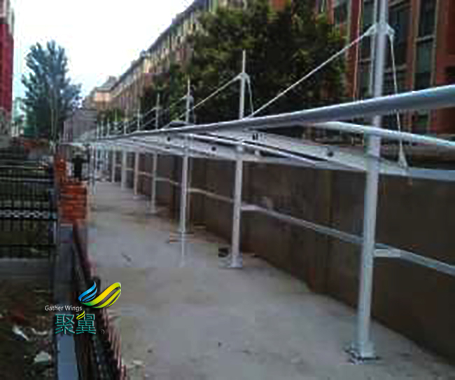 膜結(jié)構(gòu)車(chē)棚而且不會(huì)影響從棚內(nèi)看的景觀的視線,而且將人們的生活空間從室內(nèi)延伸到室外,創(chuàng)造出了更加有生活情調(diào)的生活方式。上海外岡鎮(zhèn)周涇村膜結(jié)構(gòu)車(chē)棚的篷布材質(zhì)是膜結(jié)構(gòu),而膜結(jié)構(gòu)車(chē)棚膜材的最大特點(diǎn)是強(qiáng)度高、耐久性好、防火難燃、自潔性好,不受紫外線影響,藝術(shù)性,經(jīng)濟(jì)性,透光性,耐候性,抗沖擊性,阻燃性,耐溫性,輕便性,隔音性,使用壽命長(zhǎng),一般15-30年。膜結(jié)構(gòu)車(chē)棚具有高透光率,透光率為13%,對(duì)熱能反射率73%,熱吸收量很少。