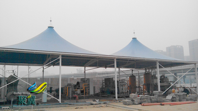 膜結(jié)構(gòu)車棚在內(nèi)外兩邊采用雙層的PTFE玻璃纖維織物覆蓋。膜結(jié)構(gòu)車棚還可用來覆蓋各種不同的小型建筑,如加油站、收費(fèi)站、服務(wù)中心、大門入口以及遮陽設(shè)施等。雖然每個工程的面積只有幾百平方米,但膜結(jié)構(gòu)車棚的數(shù)量很多,把全國的工程加起來,膜結(jié)構(gòu)車棚工程的數(shù)量就很可觀了。