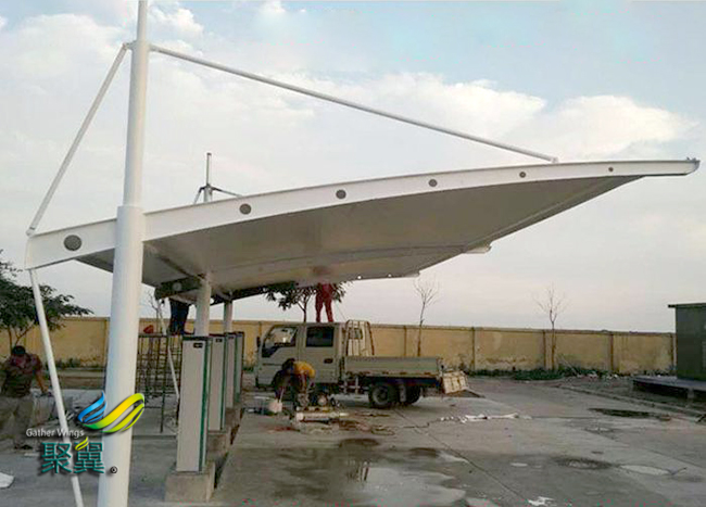 膜結(jié)構(gòu)車棚膜構(gòu)造鴻溝的走向,假如鴻溝對比平直,能夠思考用一個膜塊的長邊作為這條鴻溝。不然只能用多個膜塊的短邊拼接成這條鴻溝。