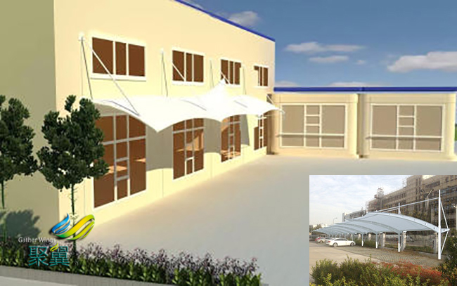 其實膜結構車棚還有一個特點就是安裝也很便捷,快速,造型好,工期短,膜結構車棚的變形能力和擴張性導致抗震性能比傳統(tǒng)車棚強一萬倍之多。這也和膜結構車棚的結構組成分不開的。車棚是由上面造型奇特的膜材質(zhì)和下面骨架的鋼結構、鋼索組成的,現(xiàn)場安裝即可完成。