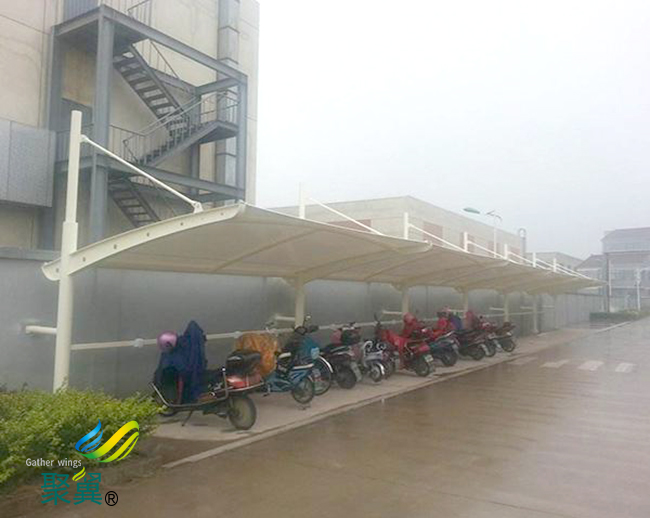 膜結(jié)構(gòu)車棚的造價(jià)是傳統(tǒng)的一半甚至三分之一,因此十分經(jīng)濟(jì),且材質(zhì)有良好透光性,能夠很好的節(jié)約能源。膜結(jié)構(gòu)車棚的材料很特殊,因此膜結(jié)構(gòu)車棚的造型也十分的獨(dú)特,可以變幻成各種吸引人的視覺效果,十分漂亮。
