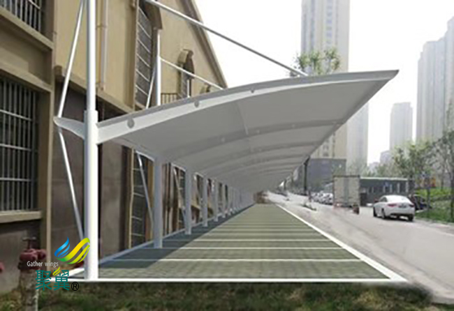 膜結(jié)構(gòu)車棚的色彩是很多樣的。膜結(jié)構(gòu)車棚的透光性較強(qiáng),基本的厚度是在1mm左右。在顏色上的選擇面是很廣泛的,在白天的透射比可以達(dá)到20%。在白天的時(shí)候基本是無(wú)須照明采光,在夜間的時(shí)候在散射作用下可以形成五彩斑斕的夜景。 其實(shí)給大家說起膜結(jié)構(gòu)車棚應(yīng)該都是很熟悉的,而膜結(jié)構(gòu)車棚就是由多種高強(qiáng)薄膜材料及加強(qiáng)構(gòu)件通過一定方式使其內(nèi)部產(chǎn)生一定的預(yù)張應(yīng)力以形成某種空間形狀。 膜結(jié)構(gòu)車棚如何在環(huán)保行業(yè)應(yīng)用,說到膜結(jié)構(gòu)可能很多朋友見到最多的就是膜結(jié)構(gòu)車棚。 膜結(jié)構(gòu)車棚膜材的密閉性能很好的解決場(chǎng)地?zé)焿m收集、揚(yáng)塵抑制、防雨防潮等要求,結(jié)合膜結(jié)構(gòu)車棚膜材柔韌的特性。