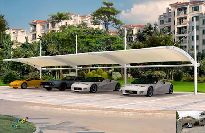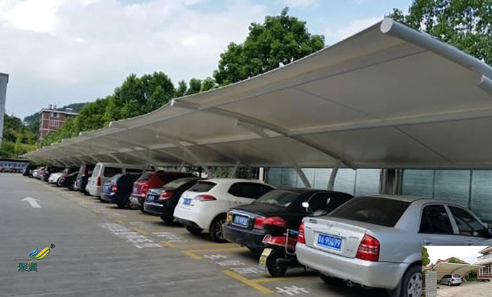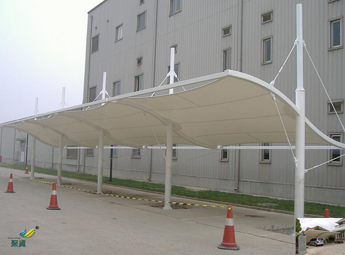 膜結(jié)構(gòu)使用壽命及特點:膜結(jié)構(gòu)停車棚的篷布材質(zhì)是膜結(jié)構(gòu),而膜材的大特點是強度高、耐久性好、防火難燃、自潔性好,不受紫外線影響,使用壽命長,一般15-30年。具有高透光率,透光率為13%,對熱能反射率73%,熱吸收量很少。正是因為這種劃時代的膜材料的發(fā)明,使膜結(jié)構(gòu)車棚成為現(xiàn)代化的永久建筑。