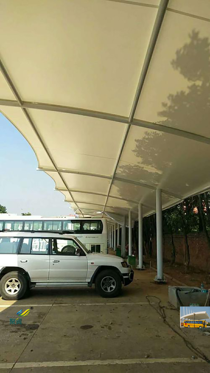 3、經(jīng)濟(jì)性:長(zhǎng)期露天停放的車輛,性能損耗速度比車棚內(nèi)停放車輛快一倍。而采用膜結(jié)構(gòu)雨蓬能夠減緩車輛的老化速度。從經(jīng)濟(jì)角度來(lái)說(shuō),投入不多卻大大延長(zhǎng)了汽車的壽命。