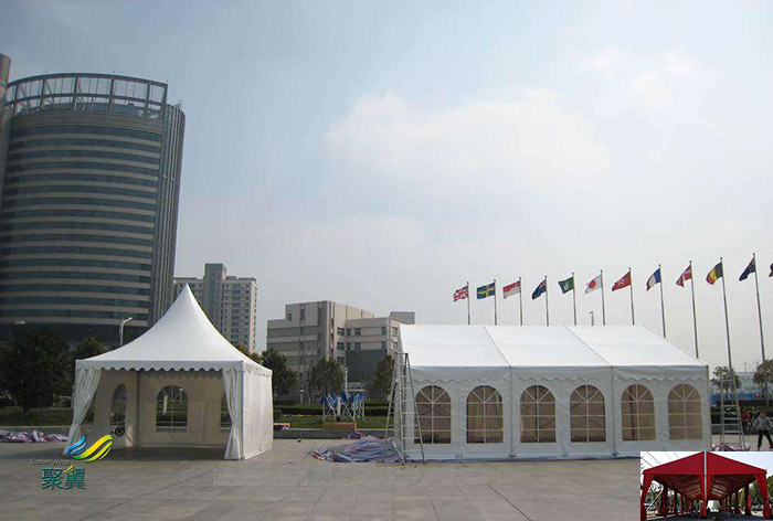 它由基原可移動框架和篷布組成,框架一般有合金和鋼為主要部件,拆裝十分靈敏便利,貯存便利,具有體積小,易運(yùn)輸?shù)忍匦?。篷布是篷房十分重要的部件,它的好壞直接影響部篷房的安全性,同時也與活動緊密相關(guān),因此選擇高品質(zhì)的篷布十分重要。