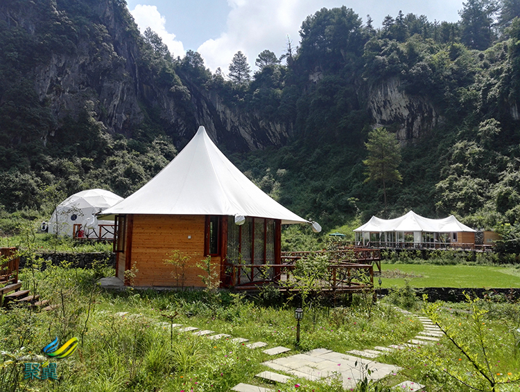 根據(jù)客人的這些需要選擇適宜的地方搭建更具西方風味,更具野營風味的膜結構帳篷酒店。