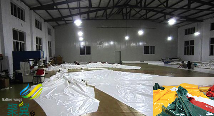 3.加強(qiáng)覆膜織物:在兩層很薄的薄膜之間粘接或者熱合上布基。層壓工藝提供給這類織物相應(yīng)的強(qiáng)度和耐久性。如果使用透明的編織絲,再覆上透明的薄膜就可以制成透明度極高的材料。它使用的時(shí)間比覆膜織物的使用時(shí)間長(zhǎng)的多。