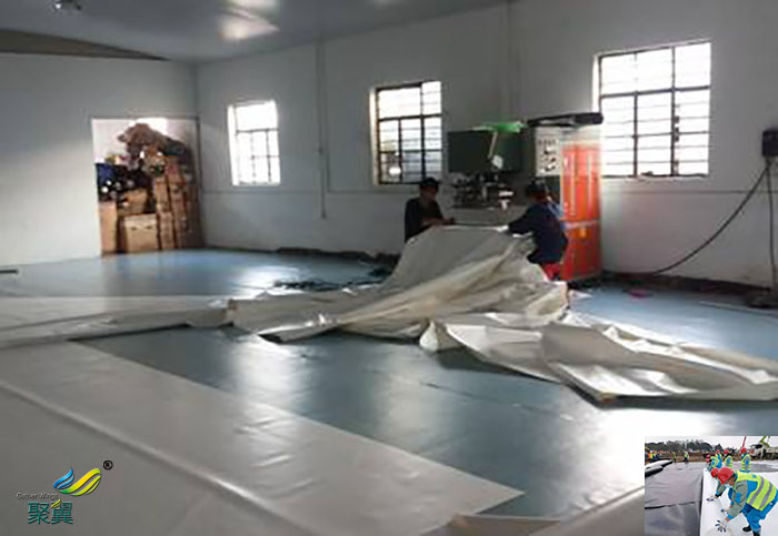 2、PVC建筑膜材開發(fā)和應(yīng)用得比較早,通常規(guī)定PVC涂層在玻璃纖維織物經(jīng)緯線交點(diǎn)上的厚度不能少于0.2mm,一般涂層不會(huì)太厚,達(dá)到使用要求即可。PVC本身不耐老化,多用于臨時(shí)建筑。